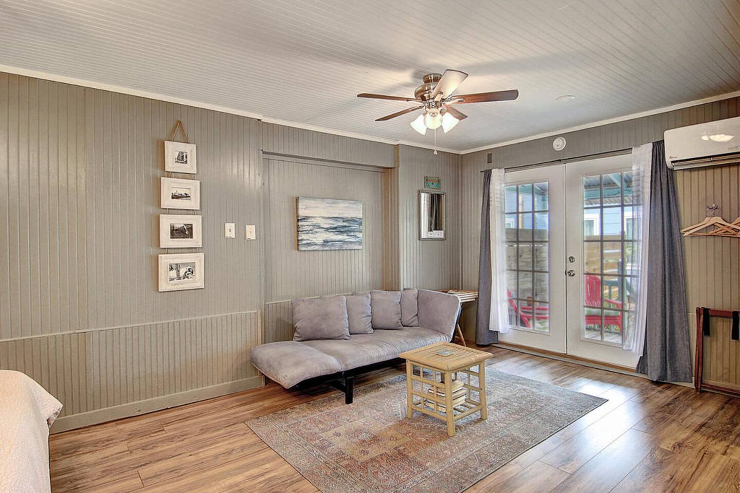 Angler's Court is comprised of several original fishing bungalows built in the early 1940’s and is a gem in the heart of Old Town Port Aransas. Guests are steps away from boutique shopping, the best restaurants, the Port Aransas Museum, and the best nightlife entertainment (Shorty's, Treasure Island, Giggity's, The Back Porch, Salty Dog). Enjoy the porches, salt breeze, bristling palms, and the comfort of old island charm relaxing in this renovated beach bungalow. We also have our Beach Cabana #15, Beach Bungalow #16, Beach Casita #17, Beach Cottage #2, and our three bedroom Island House listed on this website available to rent-all on the same property. *Our listed price includes the local hotel tax of 7%. Airbnb will charge you a 6% Occupancy Tax, which collects for the State of Texas - FYI* This cottage provides free WiFi, (NO TV) for your relaxation, still providing everything you need to feel right at home: AC, Queen Sized Bed, WiFi, Kitchenette* (Microwave, Refrigerator, Dishes, Keurig Coffee Machine, *NO STOVE for cooking*). There is a gas grill on the patio behind #16, equipped with grill utensils, for guests to use as well. This is a shabby chic cottage - clean, classic, refreshing.