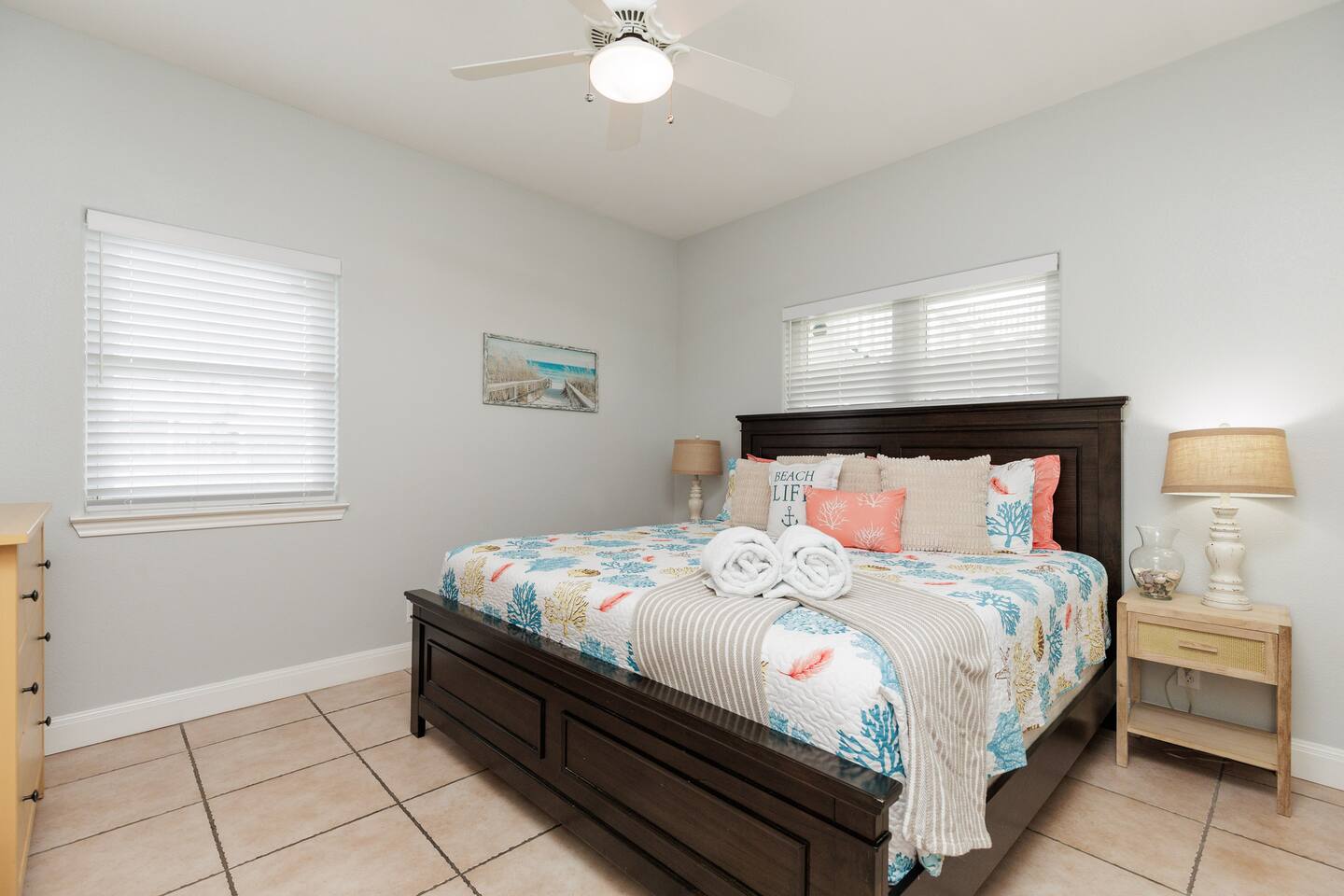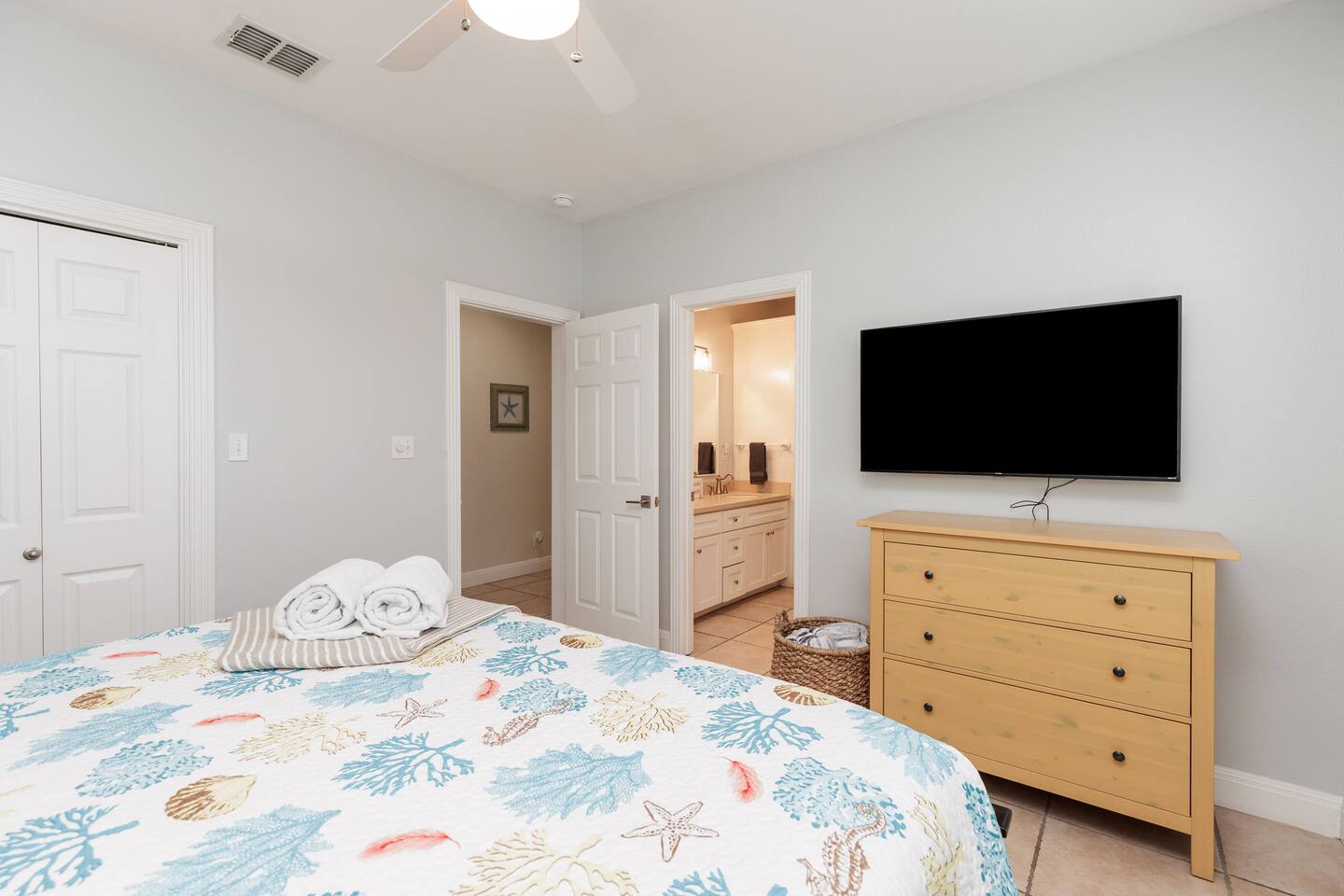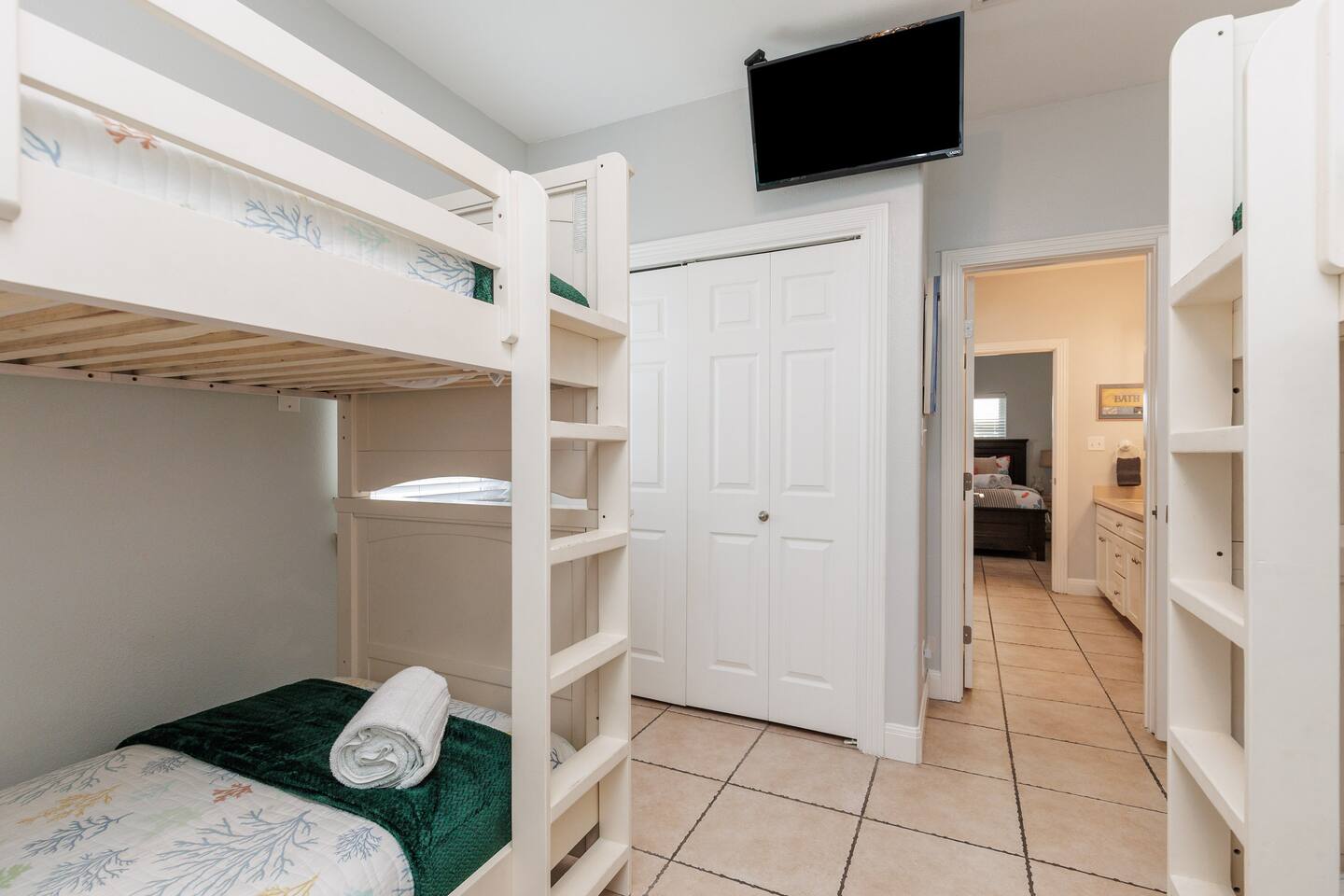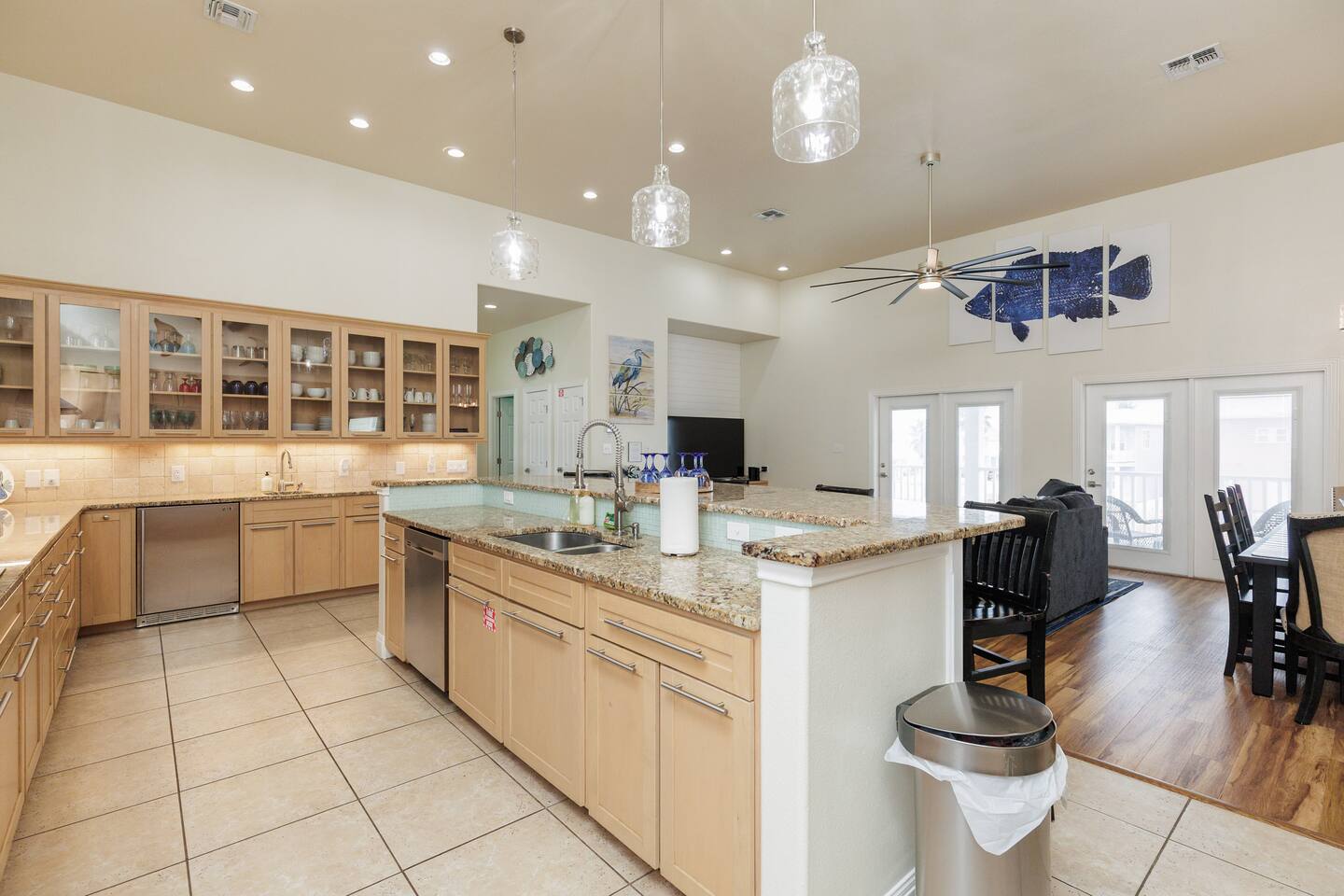 The heart of the home features an expansive open-plan kitchen, dining, and living area, ideal for gatherings. Three bedrooms offer king beds for ultimate comfort, while the kids will love the dedicated bunkroom with four twin beds. Plus, there's a cozy pullout couch for extra guests. ✨ Amenities Include: -Relaxing outdoor wrap-around deck -Ping-Pong table in the garage -56" HDTV with streaming services (Netflix, Hulu, -Disney+, and more) + TV's in each bedroom -Free Wi-Fi and a dedicated workspace -3.5 bathrooms for added convenience -Access to a community pool just across the street -In-unit washer and dryer for your convenience -Fish from your deck! The pond just feet away from the back porches provides endless fishing entertainment, fish that have been caught in the pond include redfish and drum