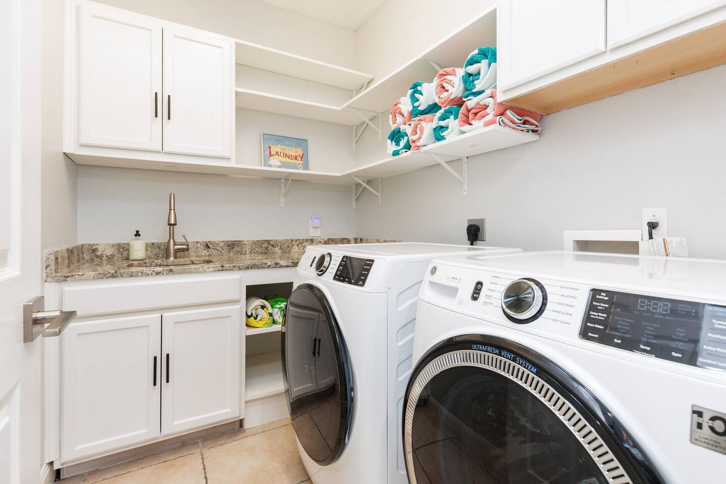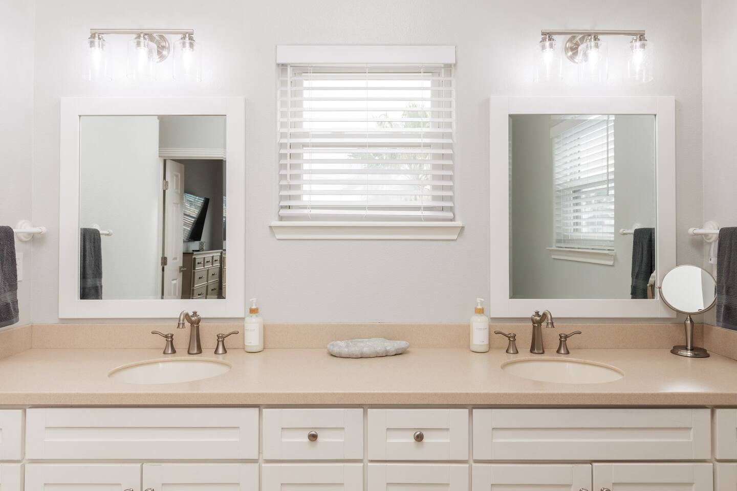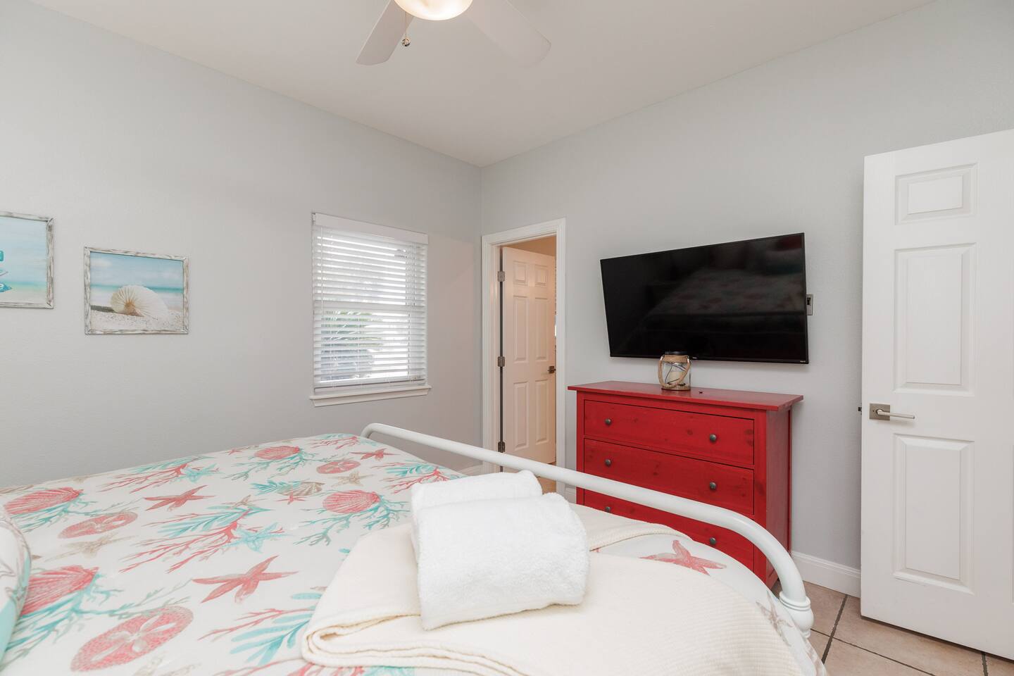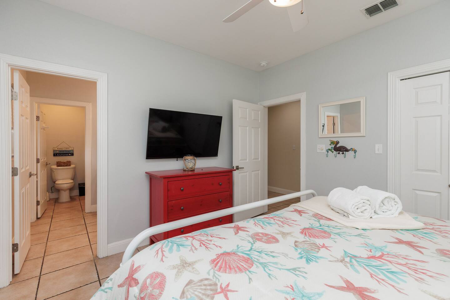 The heart of the home features an expansive open-plan kitchen, dining, and living area, ideal for gatherings. Three bedrooms offer king beds for ultimate comfort, while the kids will love the dedicated bunkroom with four twin beds. Plus, there's a cozy pullout couch for extra guests. ✨ Amenities Include: -Relaxing outdoor wrap-around deck -Ping-Pong table in the garage -56" HDTV with streaming services (Netflix, Hulu, -Disney+, and more) + TV's in each bedroom -Free Wi-Fi and a dedicated workspace -3.5 bathrooms for added convenience -Access to a community pool just across the street -In-unit washer and dryer for your convenience -Fish from your deck! The pond just feet away from the back porches provides endless fishing entertainment, fish that have been caught in the pond include redfish and drum